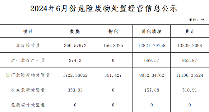 6月危險(xiǎn)廢物處置經(jīng)營信息公示