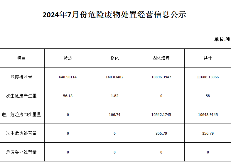7月危險(xiǎn)廢物處置經(jīng)營信息公示